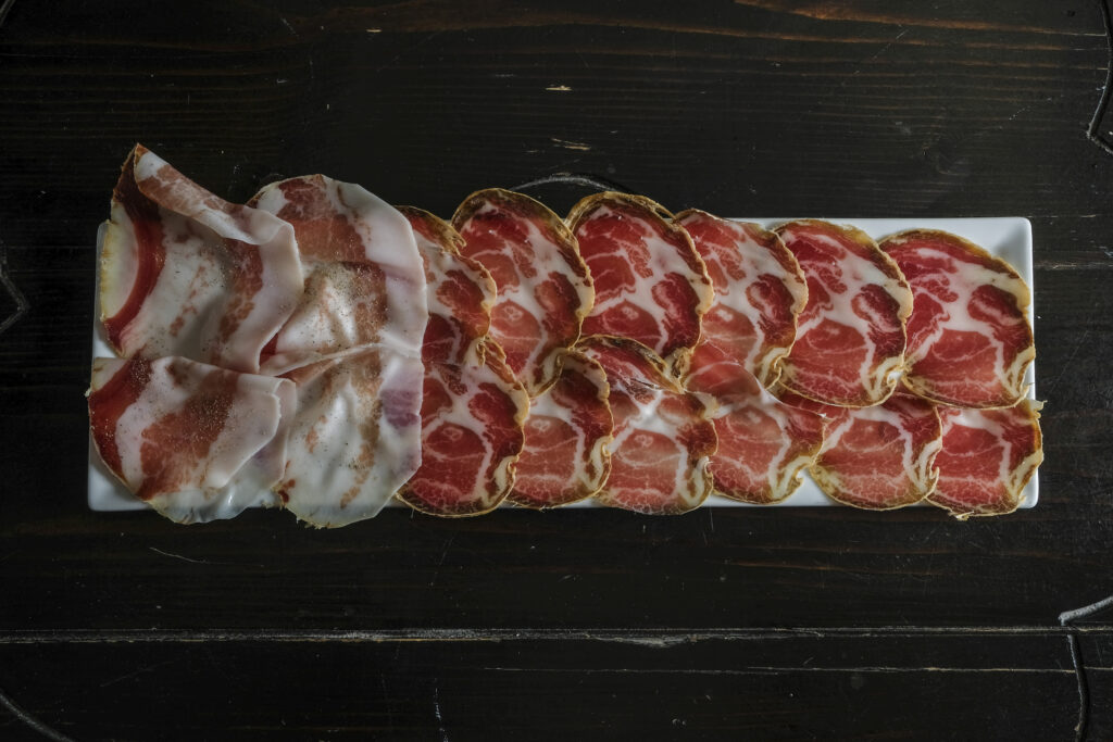 Vi sono sempre state grandi trattorie che nel farsi custodi dei propri territori, non hanno mai mancato di offrire ai propri ospiti i salumi delle loro terre, acquistandoli dai salumieri e norcini locali e raccontandoli sempre con vanto e vi sono trattorie in cui il plateau dei salumi vale il viaggio – che sia un salame di Cremona, un prosciutto di Parma in varie stagionature, la mortadella di Bologna, i salami violini di pecora, le soppressate, le finocchione. Vi sono anche ristoranti storici che conoscono il valore di questi prodotti e che nonostante siano classificati come alta ristorazione, non mancano di offrire una rassegna di grandi materie prime, salumi inclusi. Indimenticabile l’accoglienza all’Ambasciata di Quistello in cui i fratelli Tamani accoglievano in sala i loro ospiti con un tagliere di legno consumato e sempre un salame affettato da offrire agli ospiti a mo’ di comunione, prima ancora di sedersi.