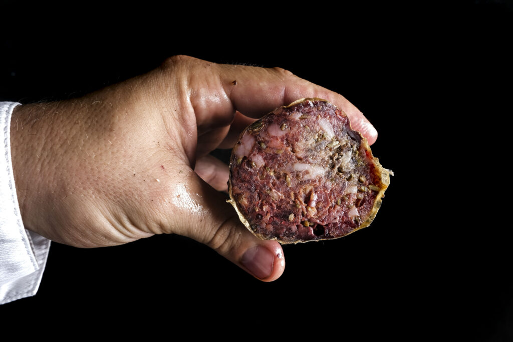 Siamo però molto fortunati perché è in atto un riscatto, un processo di redenzione che ha radici sotterranee e ben ramificate e che siamo felici di portare alla luce. Sarà che siamo in un’epoca debordante in cui è possibile avere tutto e il contrario di tutto e recepirlo in egual misura allo stesso tempo, ma possiamo affermare senza tema di errore che i salumi sono tornati a essere un cibo ricercato, anche nel senso che sono tornati a essere oggetti di ricerca. Si registrano in varie guide importanti i migliori produttori e norcini d’Italia, si cataloga sempre più lo stivale attraverso il mosaico di lavorazioni delle carni attraverso la salagione e la conservazione in moltissime modalità da nord a sud, a ogni latitudine si trova una specificità nel gusto e nella lavorazione e ormai non fa più notizia affermare che sicuramente i salumi sono uno dei tratti distintivi della cultura italiana.