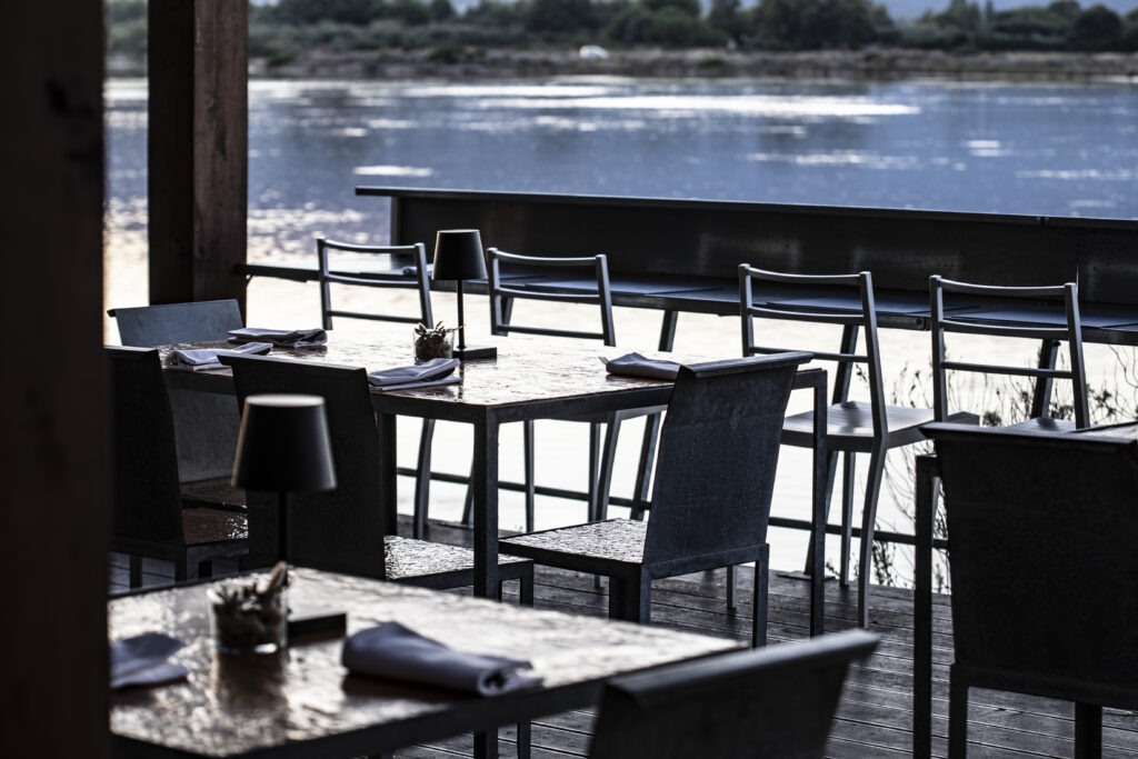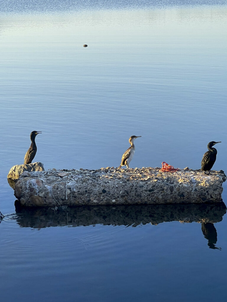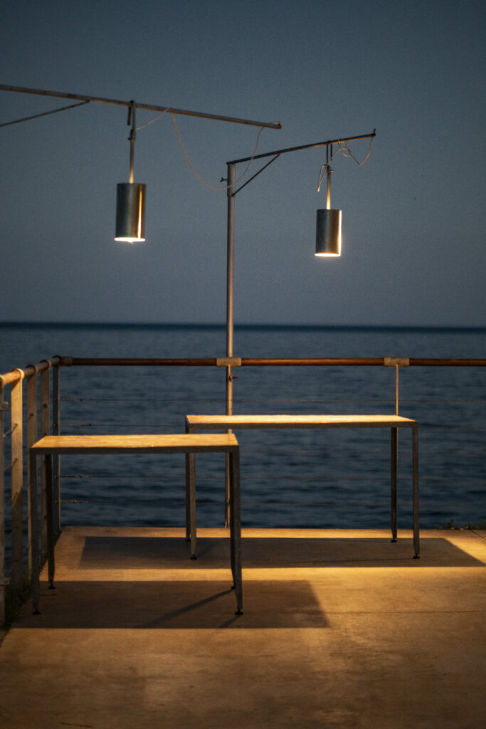 Un bistrot con una barra che guarda alla laguna: si mangia affacciati sull’acqua, si respira il salmastro, si osservano uccelli acquatici, aironi, fenicotteri, e una grande varietà di specie lacustri che abitano i bassi fondali della baia — tra pesci e stelle marine — e popolano le formazioni coralligene — tra tordi, donzelle, triglie, scorfani, murene, polpi , saraghi e muggini.