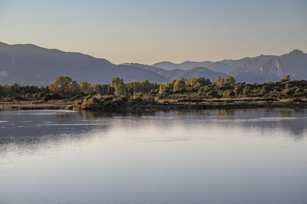 Lo specchio d’acqua principale è separato dal mare dalla penisola naturale di Fradis Minoris, antica spiaggia ricca di inclusioni fossili, e da un lungo argine artificiale. Ricoperta da una vegetazione a macchia mediterranea profumata e rigogliosa, e dalla flora tipica delle zone umide salmastre, la penisola è il paradiso di anatre, aironi, garzette, martin pescatori e tante varietà di gabbiani, tra cui il rarissimo gabbiano corso.