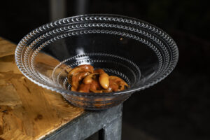 Il cuoco è Francesco Stara. Dopo aver girato un buon pezzo di mondo, Francesco ha sentito la necessità di stringere la sua vita in una lingua di terra; arbusti, posidonia secca sulla terra e viva in mare, mirto, scogli, erbe aromatiche, salmastro e iodio. Nato da una cooperativa di biologi e ideato dalla coppia Daniela Fadda e Gepi Ollano assieme al socio Giovanni Lenti, Fradis Minoris oggi compie 40 anni; quattro lustri al servizio del mare, della laguna, di una lingua di terra selvaggia. Quattro decadi in cui sono stati costruiti un laboratorio sperimentale sulla laguna, un ospedale per tartarughe Caretta Caretta, un centro recupero per cetacei, formazione e didattica ambientale, e molto di più — tanto di più.