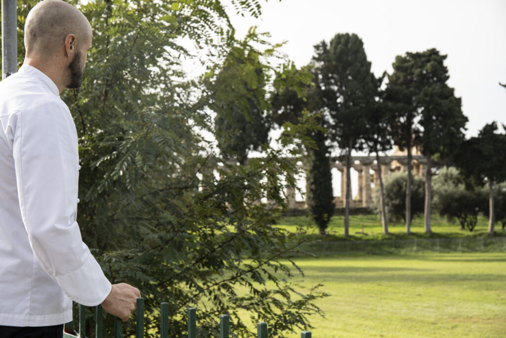 A pochi passi da questo incontro con la storia sorge la Tenuta del Duca Marigliano, boutique hotel un tempo riserva di caccia, oggi restaurata con grazia e rispetto. In questo scenario prende vita il ristorante Casa Coloni, guidato dallo chef Luigi Coppola, classe 1984, cresciuto ad Agropoli e rientrato “a casa” nel 2016 dopo anni negli hotel di lusso della capitale.