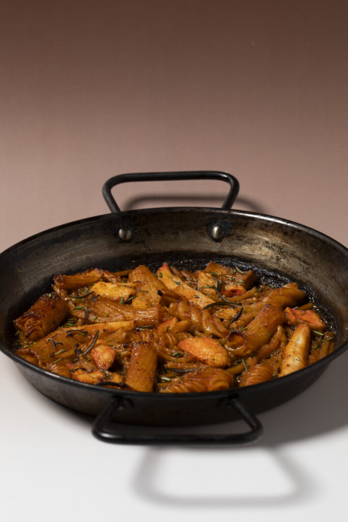 Un gesto che unisce usanze autoctone, come la classica pasta della domenica, a tecniche alloctone, come la paella, con l’obiettivo di rompere tabù e contribuire a creare una nuova tradizione: quella in cui l’innovazione non sostituisce il passato, ma lo prolunga nella quotidianità di oggi.