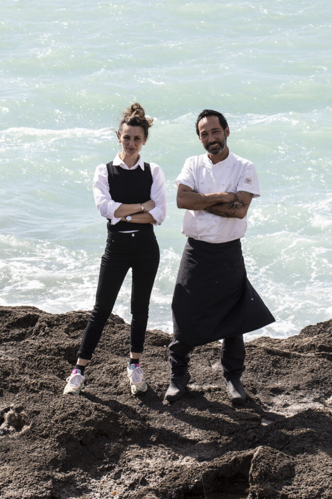 Il locale è raccolto e luminoso, con un arredamento semplice ed elegante che mette in risalto la luce naturale e la vista sul mare. L’atmosfera è calda e accogliente, lontana da formalismi, pensata per far sentire ogni ospite a proprio agio, grazie alla presenza di Giulia, maître e compagna di Fabio, che oltre al servizio cura anche la carta vini, interessante per lo spaccato di etichette nazionali che risentono maggiormente dell’influsso marino.